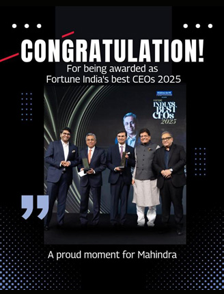 Congratulations Dr Anish Shah, Group CEO & MD and Mr Rajesh Jejurikar, ED & CEO, M&M on being selected as the Best CEOs in the Automobiles: Passenger Vehicle category of Fortune India's Best CEOs 2025, the premier annual recognition of the finest leaders of Corporate India. This is based on the decision of an eminent Jury comprising Dr Sanjiv Goenka (Jury Chair) with Zia Mody, Prashant Jain, Dinesh Kanabar, KVS Manian and Devina Mehra as members.